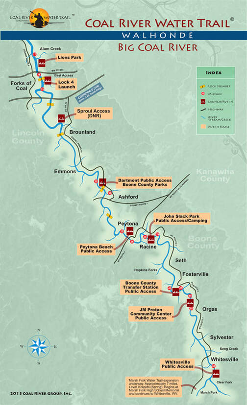 The Little and Big Coal Rivers create the Coal River, which extends from Alum Creek to the Kanawha River at St. Albans.